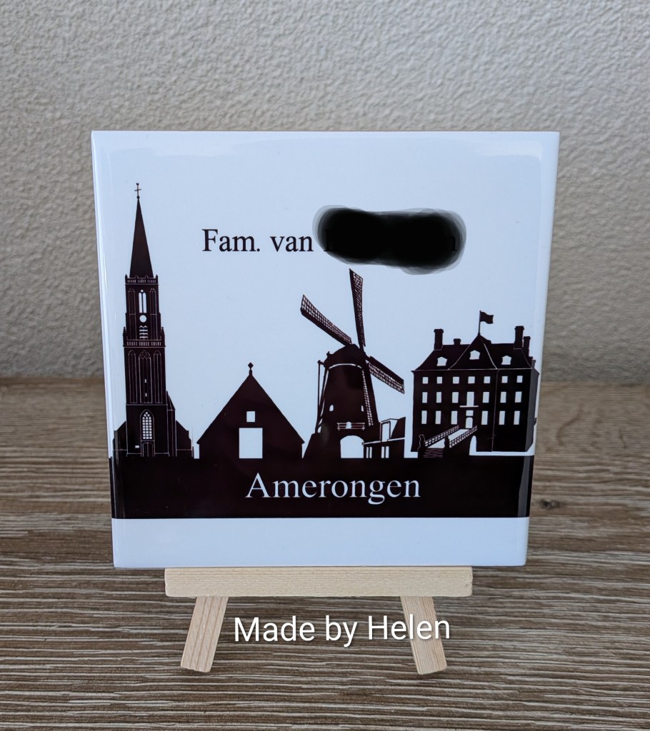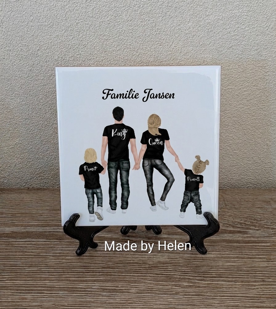 15cm x 15cm mat of glanzend inclusief zwarte houder: € 9,95.