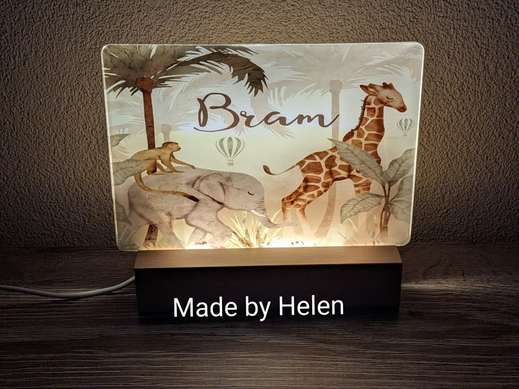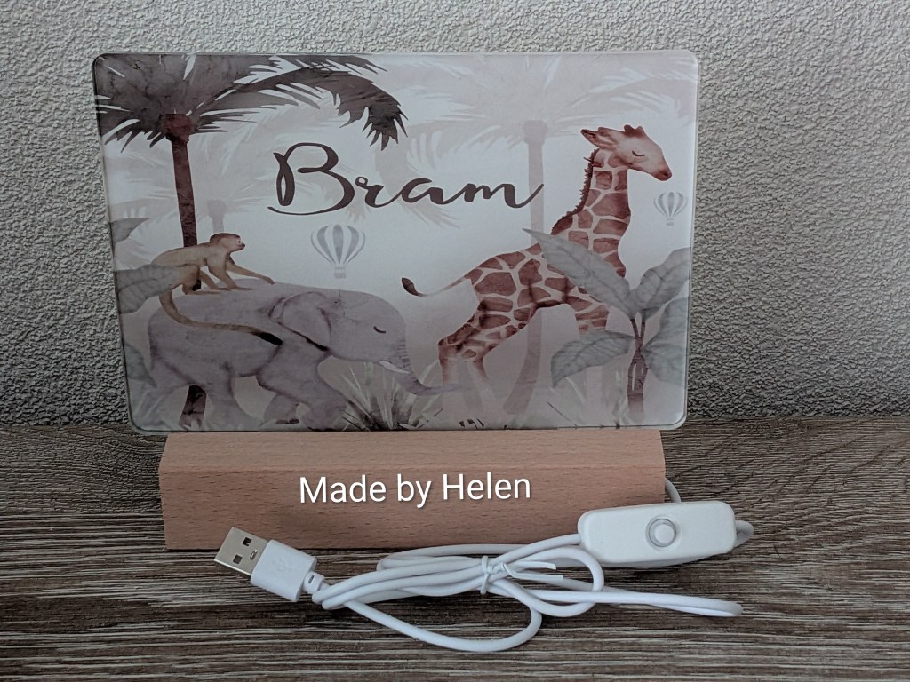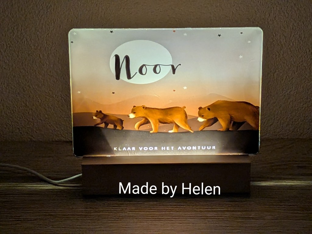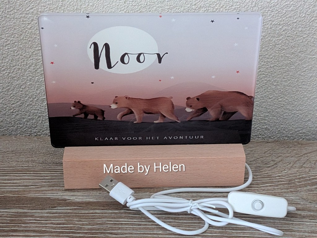 Hoe leuk zijn deze lampjes!! Deze kunnen geheel gepersonaliseerd worden! Onderstaande voorbeelden zijn bijvoorbeeld adhv een geboortekaartje gemaakt. Er is veel mogelijk! Misschien adhv een trouwkaart, trouwfoto of een idool? Het lampje bestaat uit een acrylplaat die bedrukt wordt naar keuze. Daarbij zit een houten ledlampvoet met warm licht inclusief snoer. Let op!! exclusief adapter!!