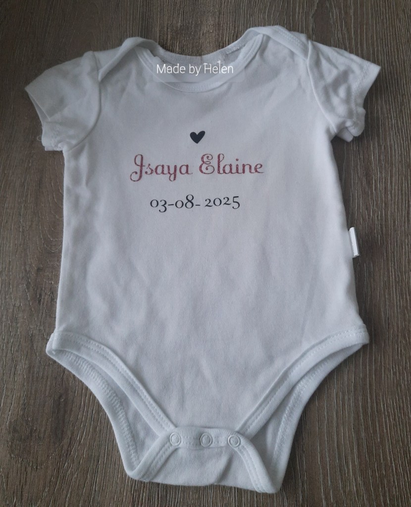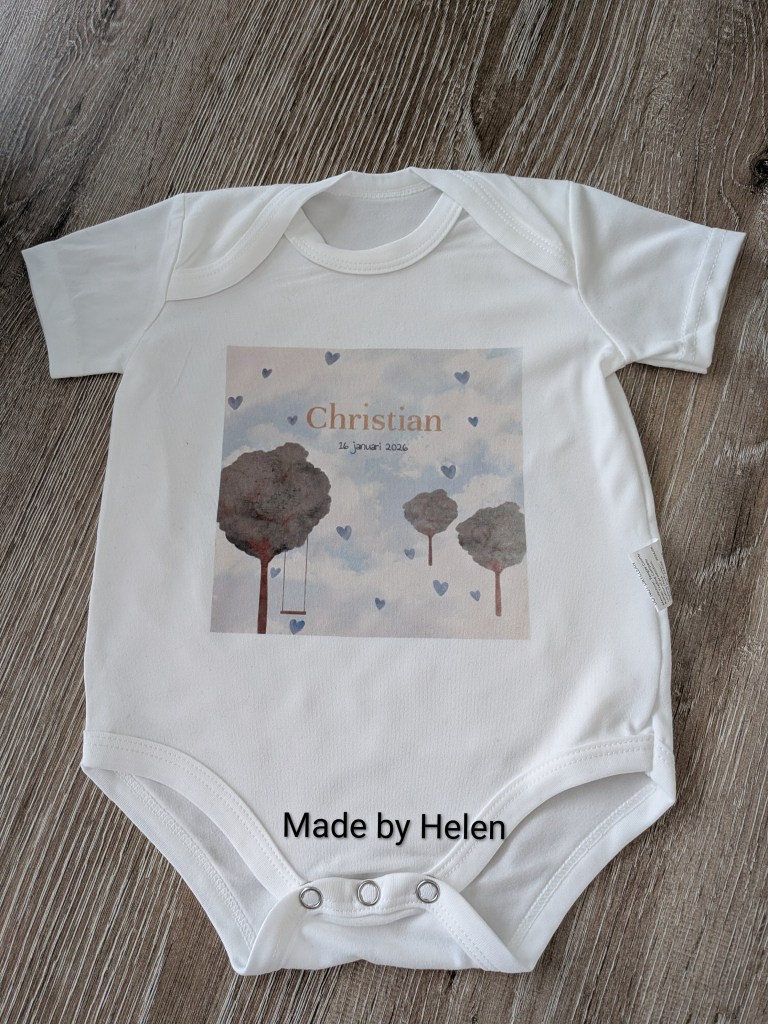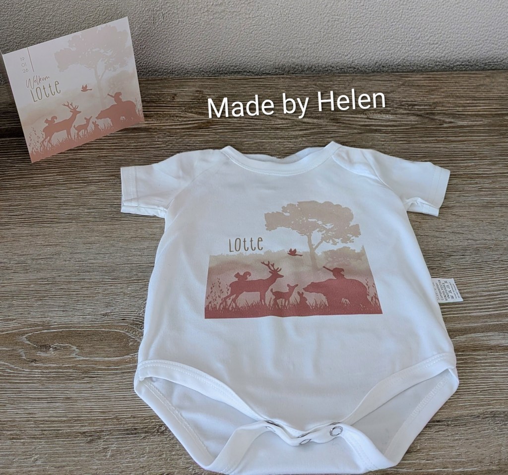 Nieuw! Polyester rompers wit middels speciale druktechniek € 12,50 met bijvoorbeeld afbeelding geboortekaartje. Afbeelding zou ook evt in een hartjesvorm of andere vorm kunnen afgedrukt op de romper.